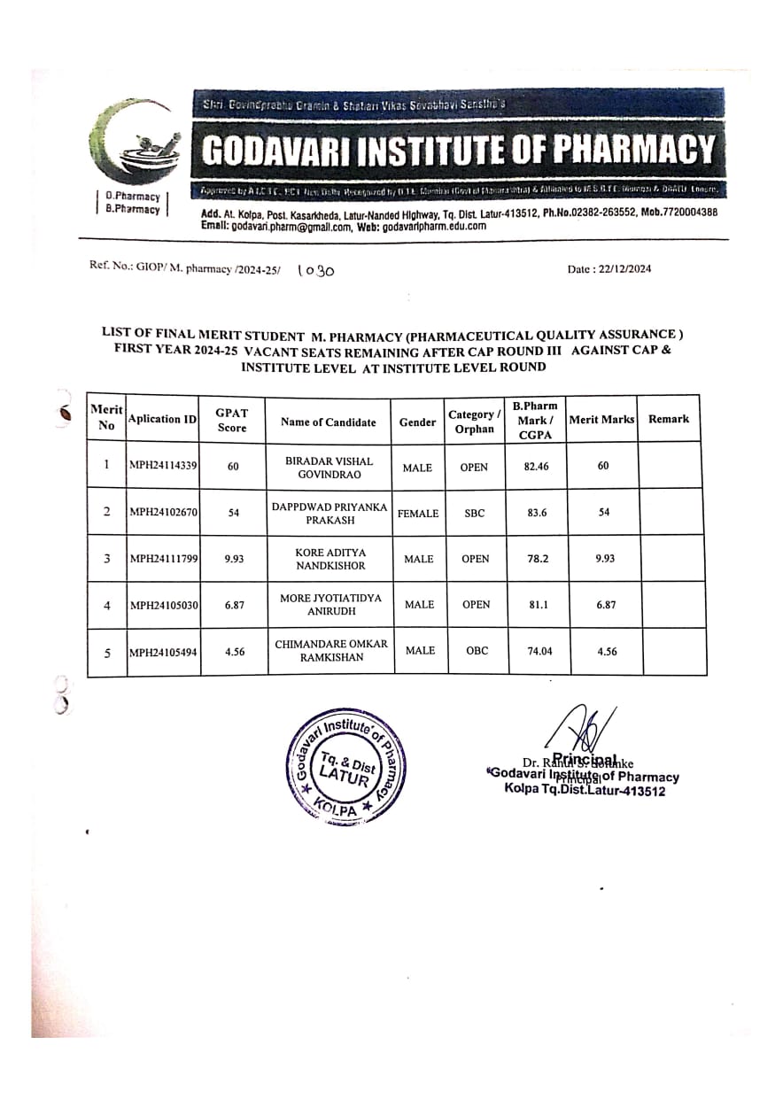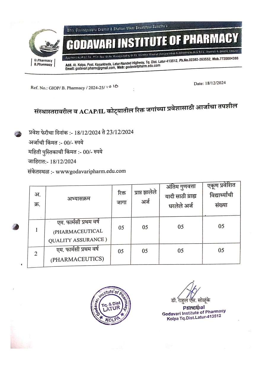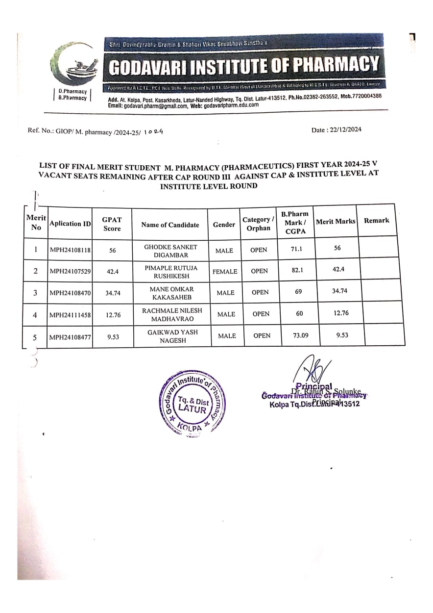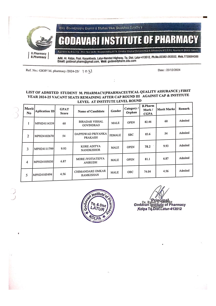 M. PHARMACY ADMISSION REPORTS-2024-2025