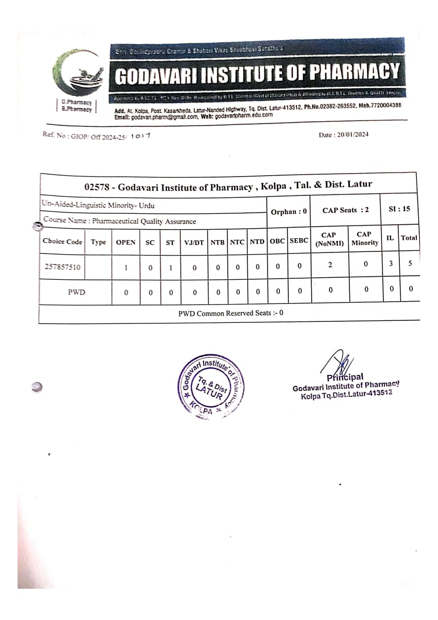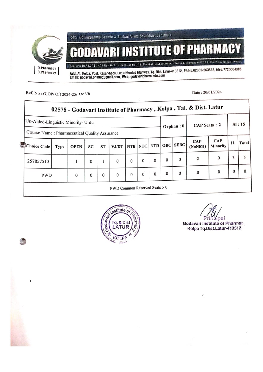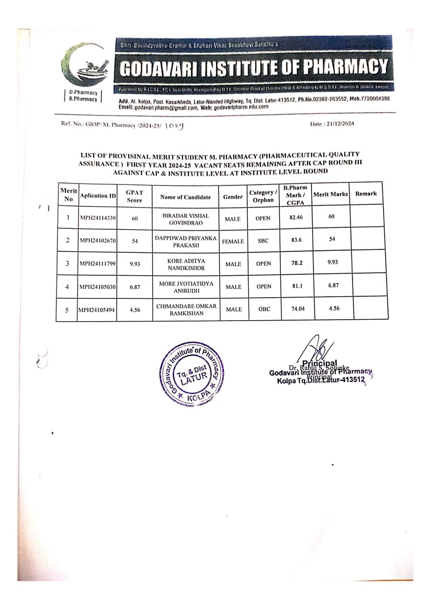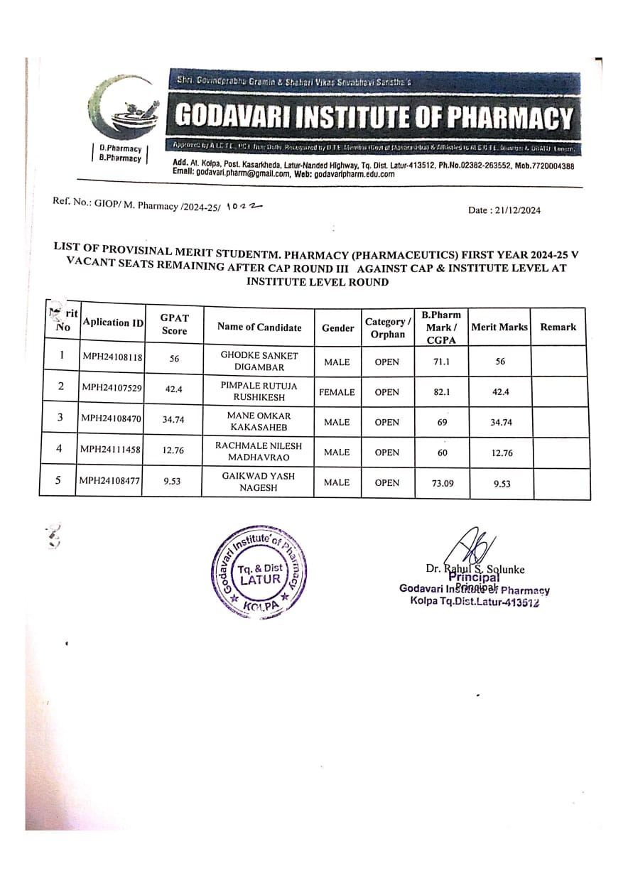 M. PHARMACY ADMISSION REPORTS-2024-2025
